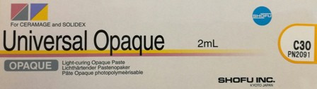 Światłoutwardzalne oapkerowe pasty systemu SHOFU Universal Opaque przeznaczone są do Ceramage UP i Ceramage. Universal Opaque zapewnia doskonałe właściwości maskujące i siły wiązania do wszystkich powszechnie stosowanych stopów dentystycznych dzięki zoptymalizowanym mikrowypełniaczom. Właściwości tiksotropowe sprawiają, że pasty są miękkie i płynne, są nakładane bardzo łatwo i szybko.